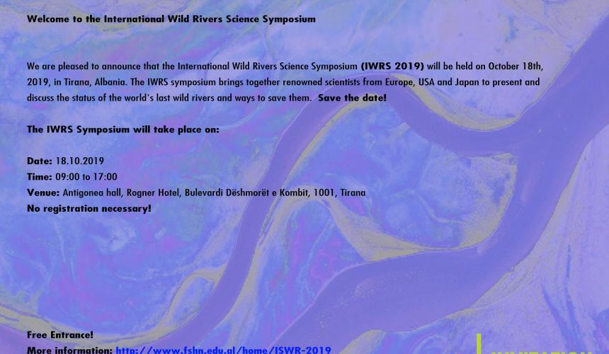 SAVE THE DATE: One day - two events for free rivers! We are pleased to announce the International Wild River Science Symposium and the Wild Rivers Night in Tirana/Albania on October 18th, 2019.