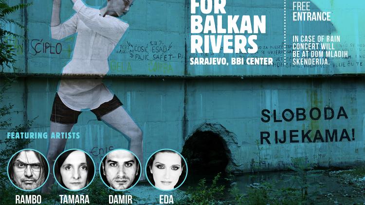 ++ Musiker Rambo Amadeus, Eda Zari, Damir Imamovic and Tamara Obrovac singen in Sarajevo gegen den Wasserkraft-Tsunami auf dem Balkan an ++ Hunderte Menschen erhoben ihre Stimme beim Konzert für die Balkanflüsse in Sarajevos Stadtzentrum am Samstag, 29. September. Sie sangen gemeinsam mit den populären Musikern um auf die massive Zerstörung der Flüsse auf dem ganzen Balkan aufmerksam zu machen.